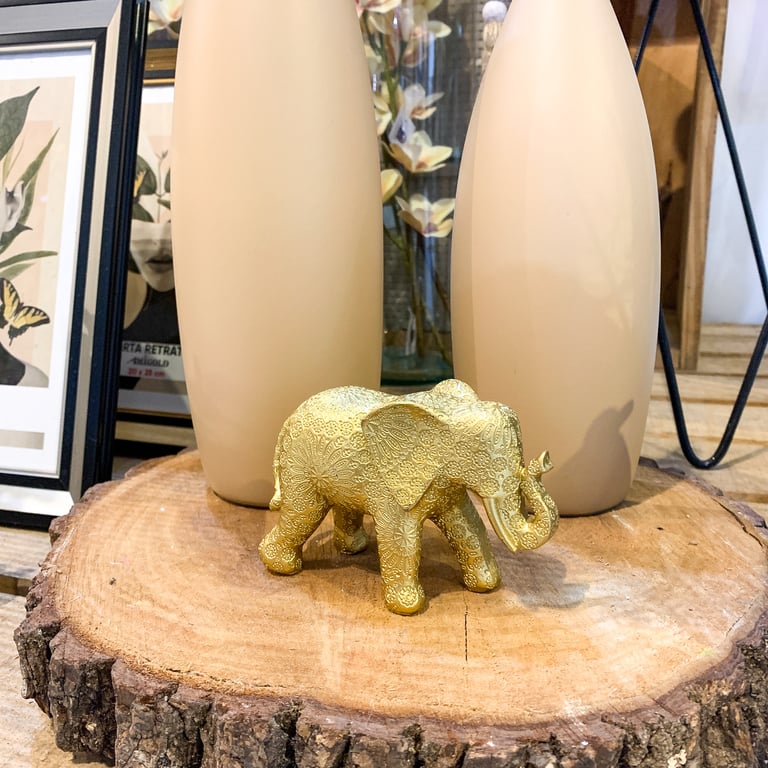 ELEFANTE RESINA 7X4X10 CM DOURADO TEXTURIZADO