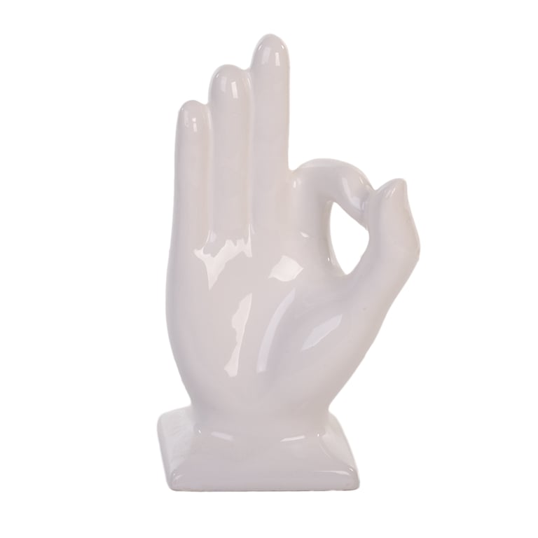 ENFEITE CERÂMICA 16X7X6 CM MÃO DEDOS OK