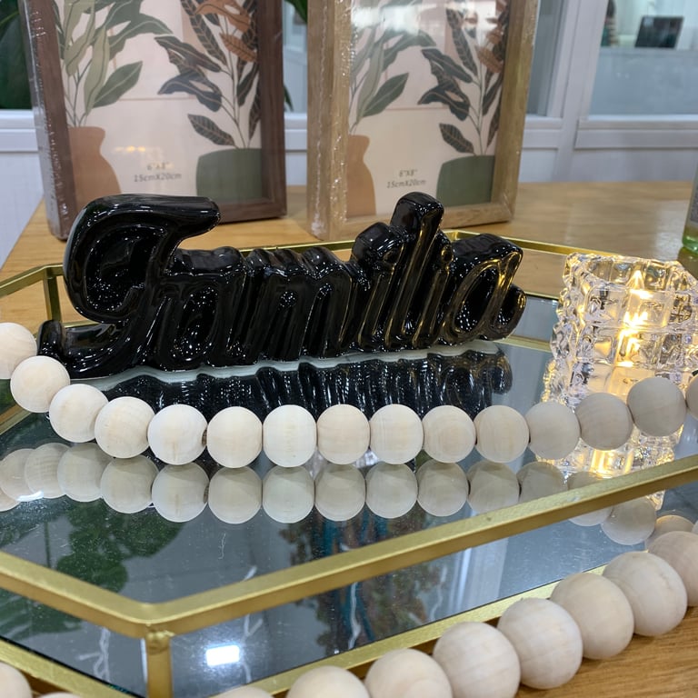 ENFEITE CERÂMICA 6,5X20,5X3,5 CM PALAVRA FAMÍLIA