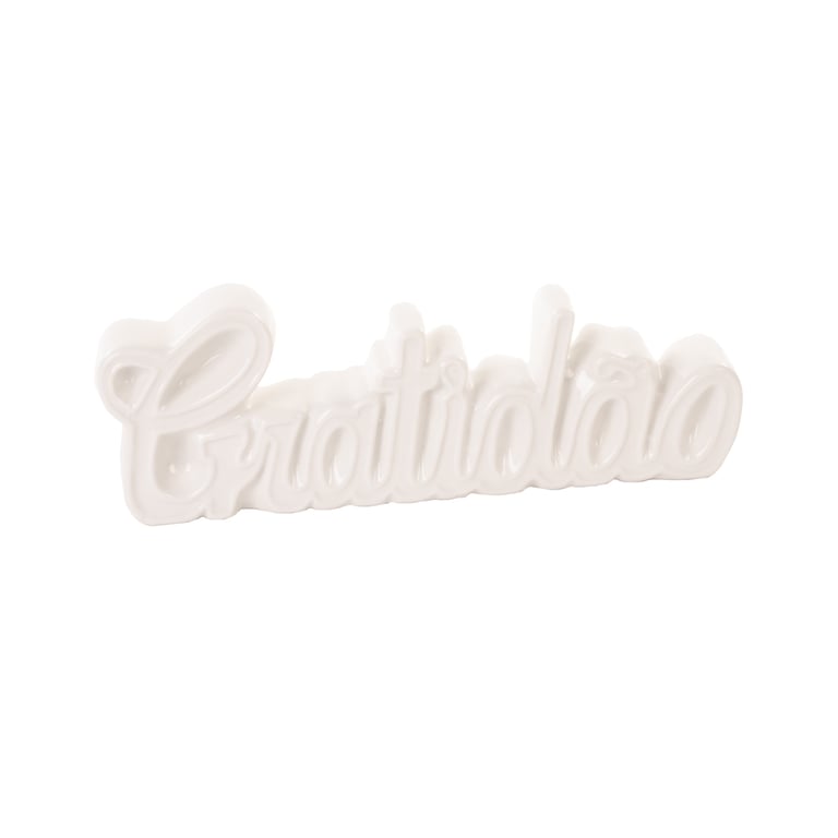 ENFEITE CERÂMICA 6X20X3,3 CM PALAVRA GRATIDÃO