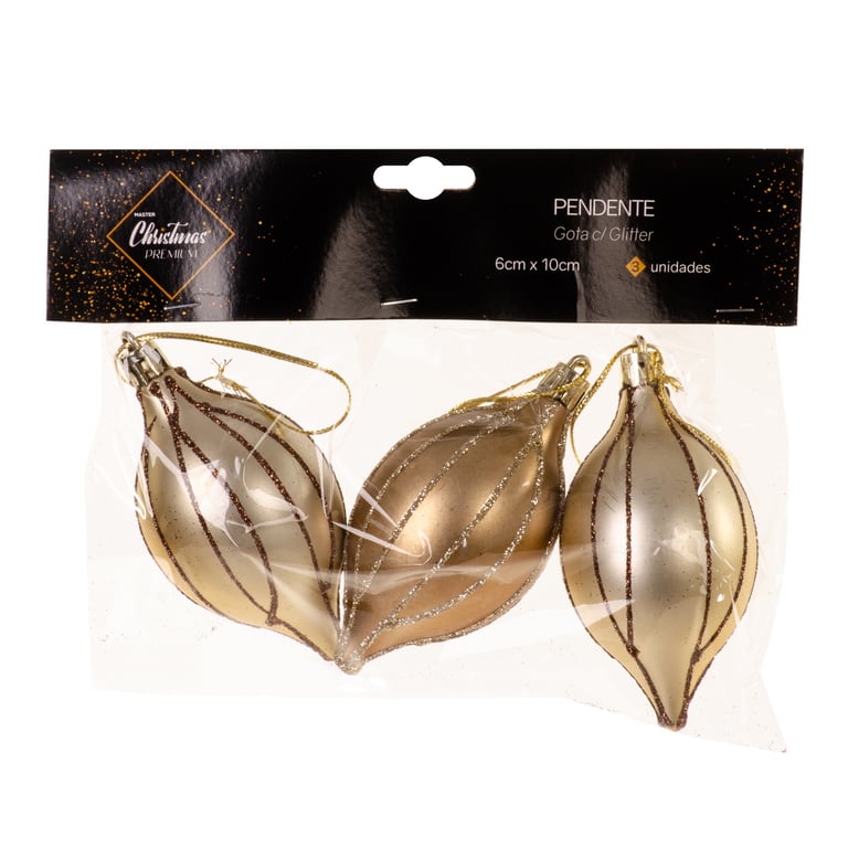ENFEITE GOTA 10 CM 3 PEÇAS LINHAS COM GLITTER
