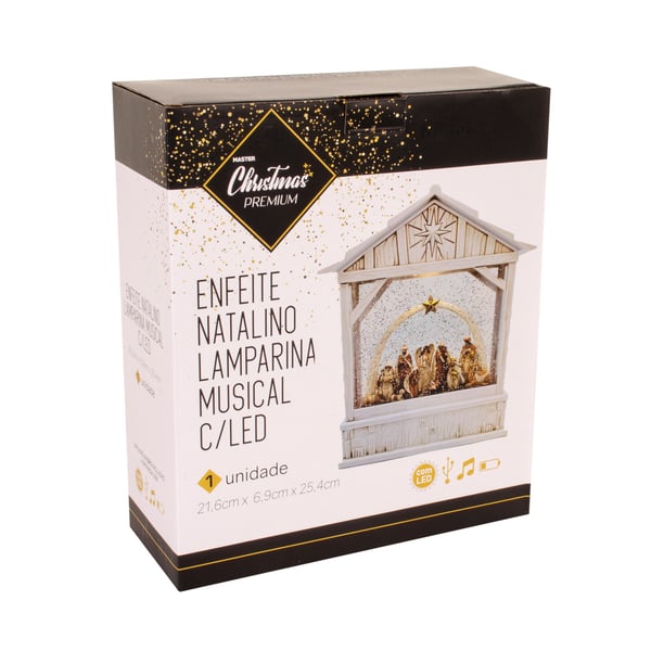ENFEITE NATAL 25,4X21,6X6,9 CM PRESÉPIO NA CAPELA COM SOM E LUZ