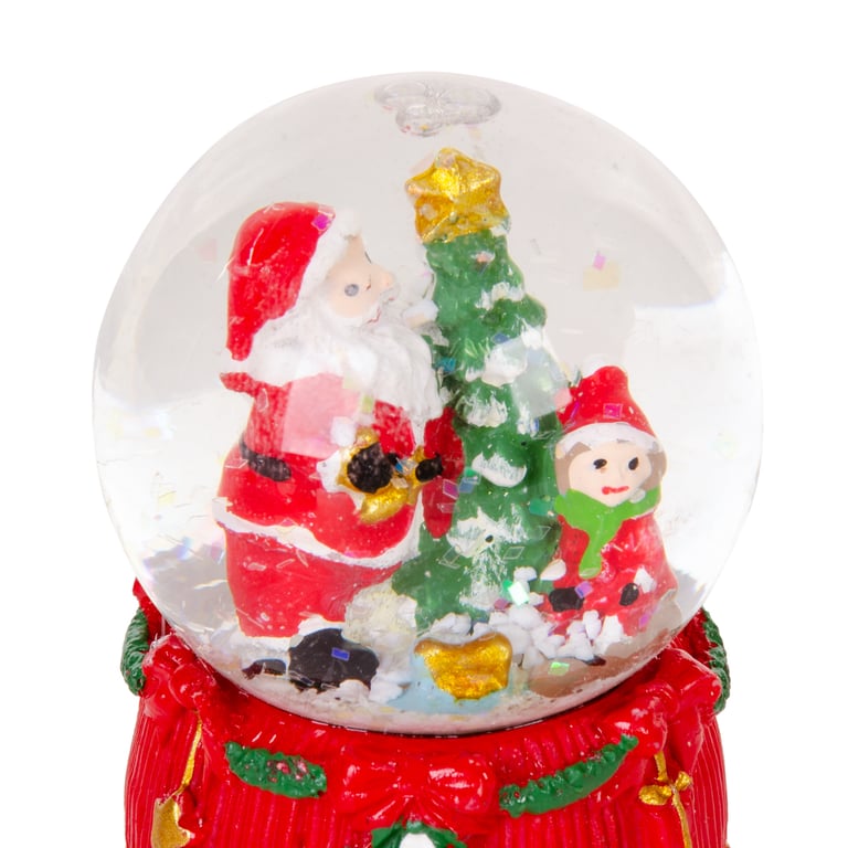 ENFEITE NATAL 6,5X4,5 CM GLOBO DE NEVE PAPAI NOEL E ÁRVORE COM CRIANÇA