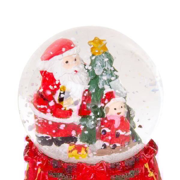 ENFEITE NATAL 8X6,7 CM GLOBO DE NEVE PAPAI NOEL E ÁRVORE COM CRIANÇA