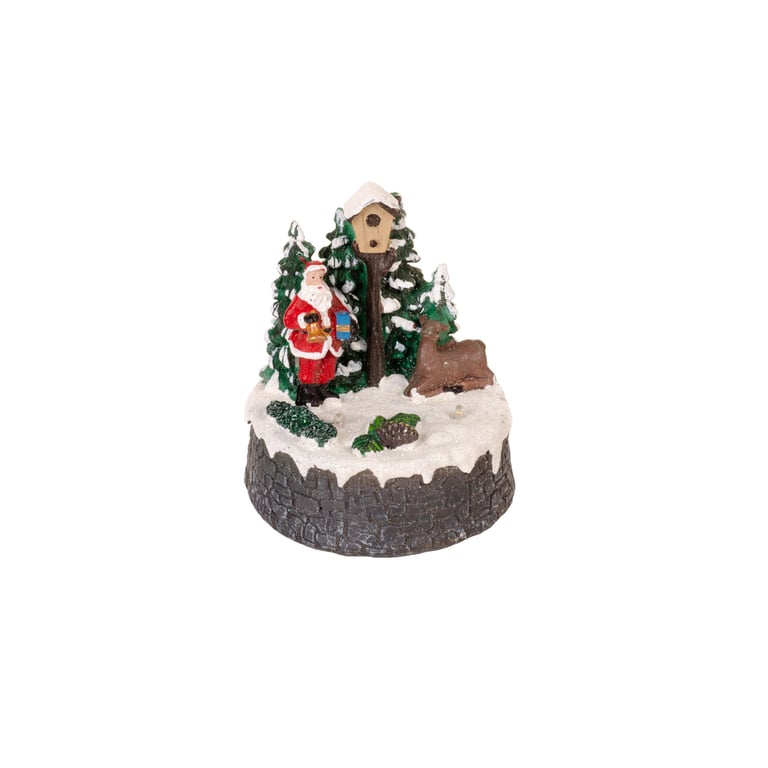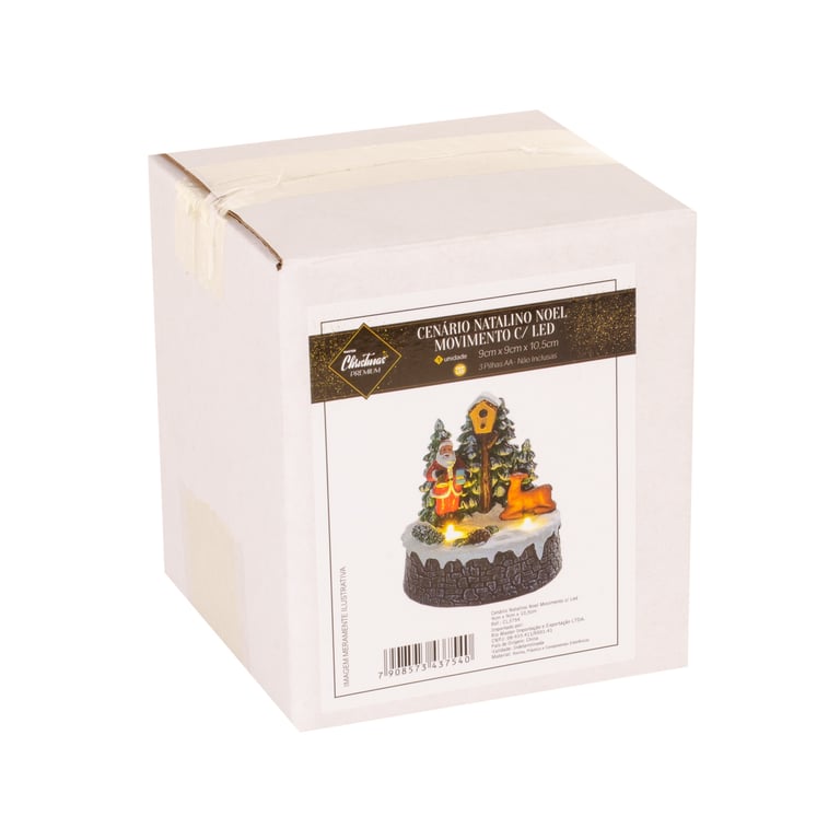 ENFEITE NATAL RESINA 10,5X9 CM CENÁRIO NATALINO COM LUZ DE LED