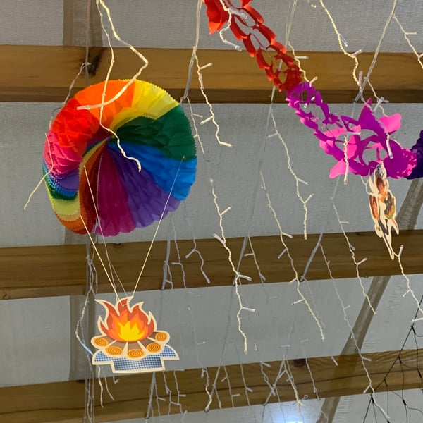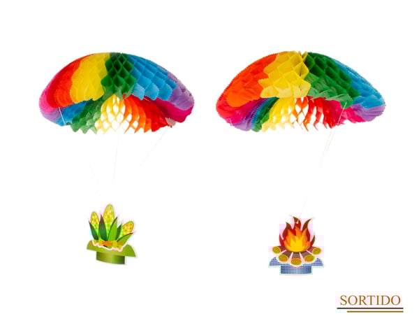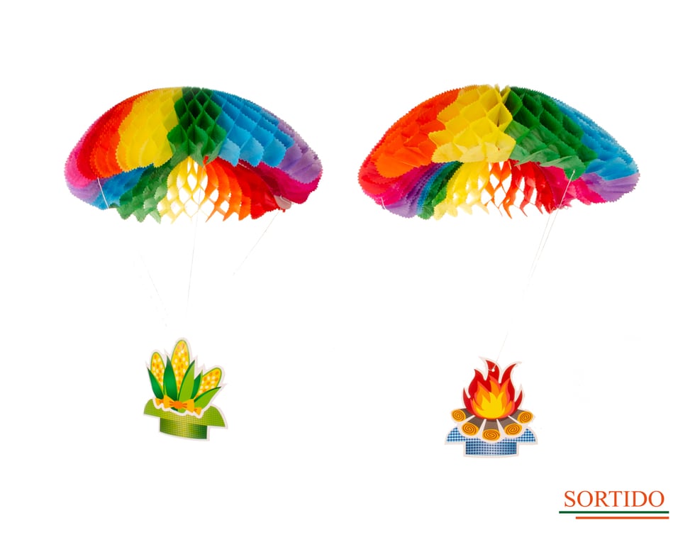 ENFEITE PARAQUEDAS PAPEL 50X35 CM SANFONADO FESTA JUNINA