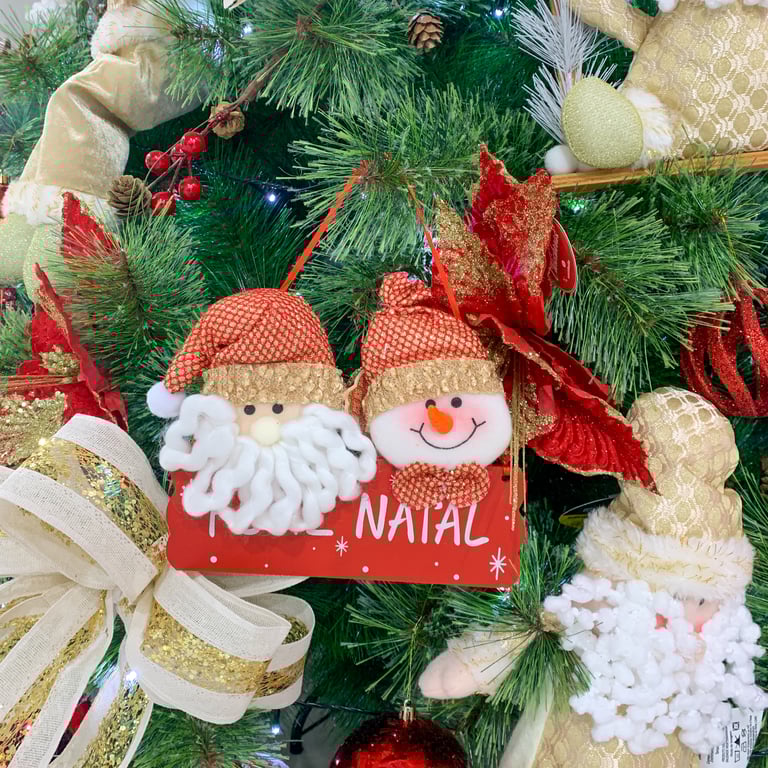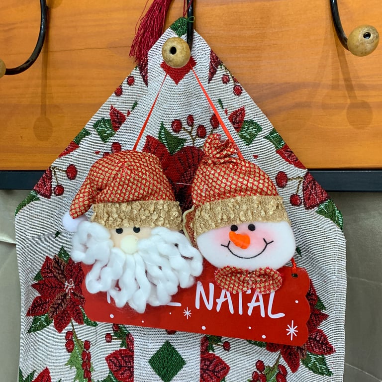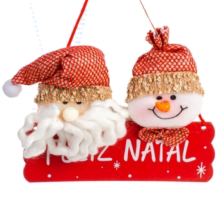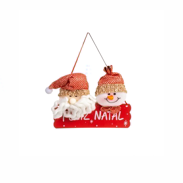 ENFEITE PORTA FELIZ NATAL 16X18 CM PAPAI NOEL E BONECO DE NEVE GORRO COM GLITTER