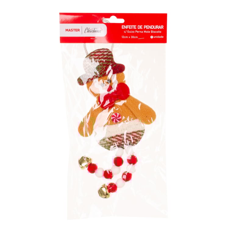 ENFEITE PORTA FELIZ NATAL 30X12 BONECO BISCOITO DE NATAL CHAPÉU TRICÔ