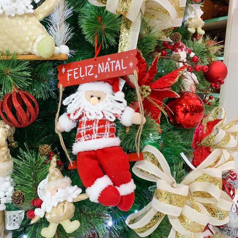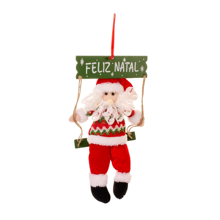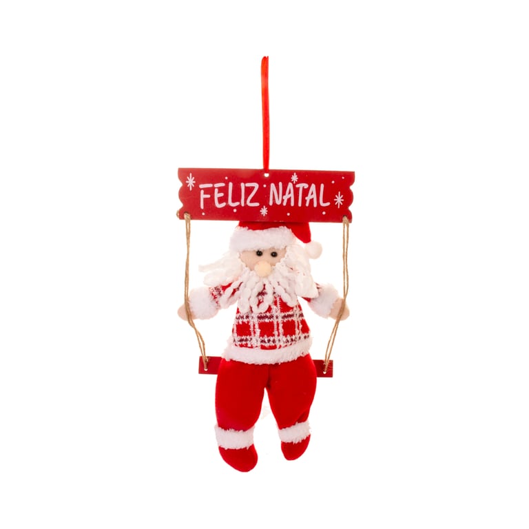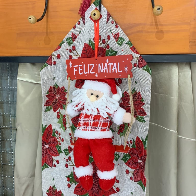 ENFEITE PORTA FELIZ NATAL 35X18 CM PAPAI NOEL ROUPA XADREZ VERMELHO