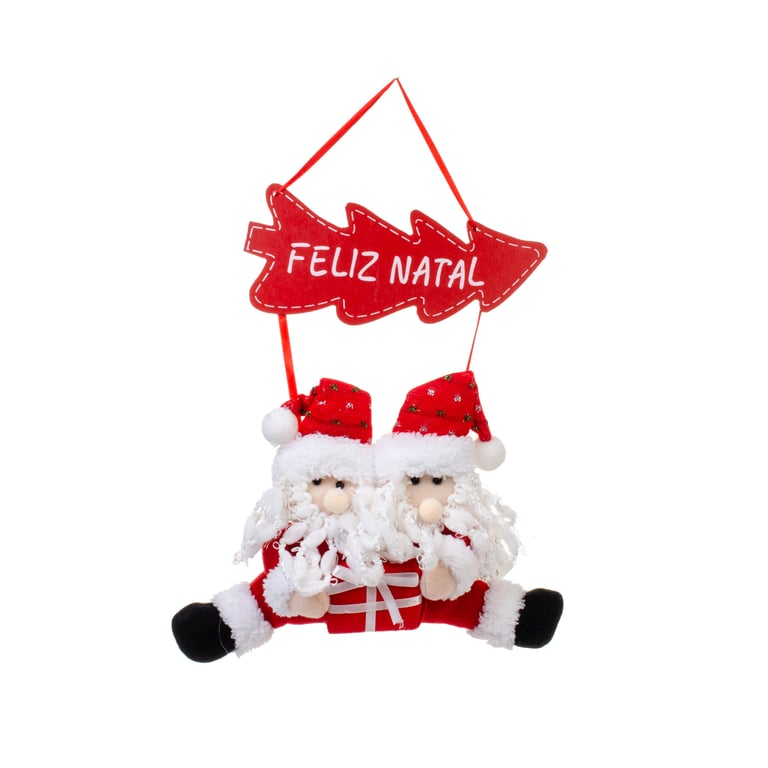 ENFEITE PORTA FELIZ NATAL 42X30 CM PAPAI NOEL DUPLO COM PRESENTE