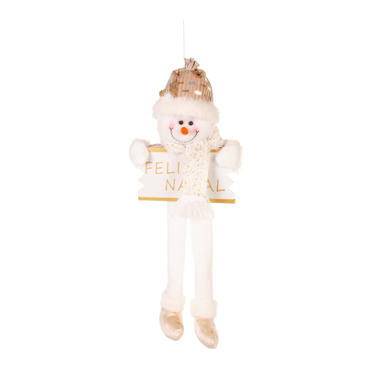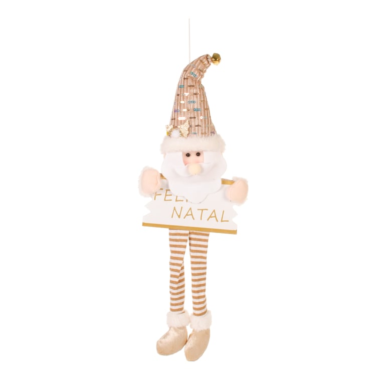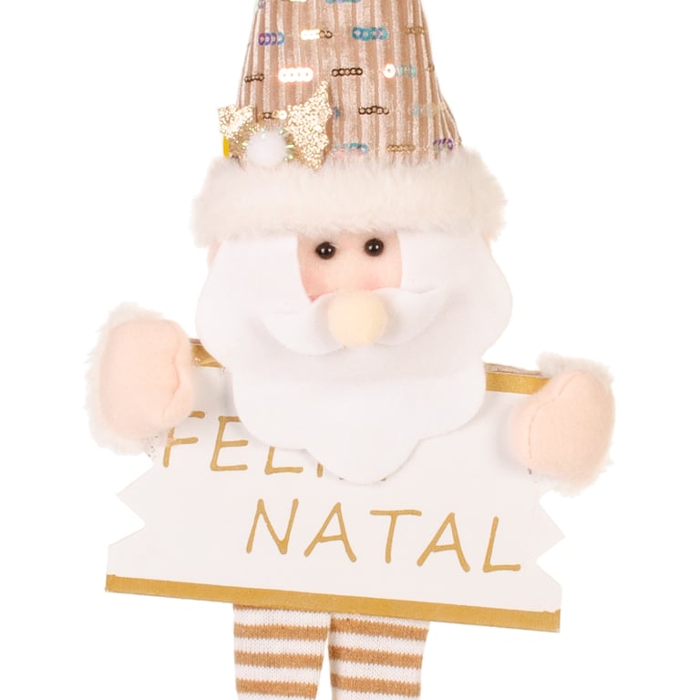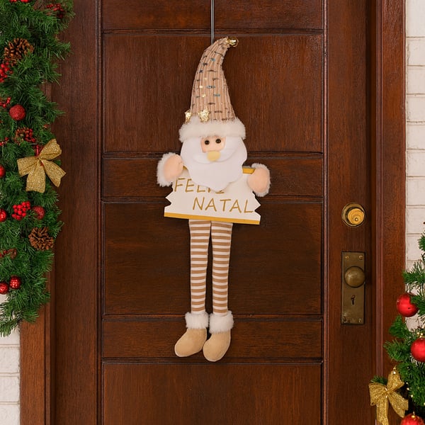 ENFEITE PORTA FELIZ NATAL 50X22 CM PAPAI NOEL / BONECO DE NEVE BEGE COM GUIZO