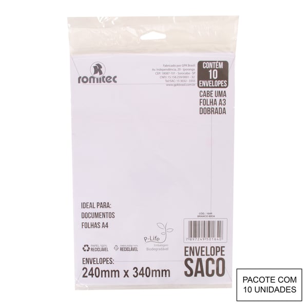ENVELOPE PAPEL 34X24 CM SACO BRANCO