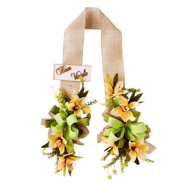 ESCAPULÁRIO / GUIRLANDA 1,60 M BEM VINDO ORQUÍDEA LAÇO VERDE