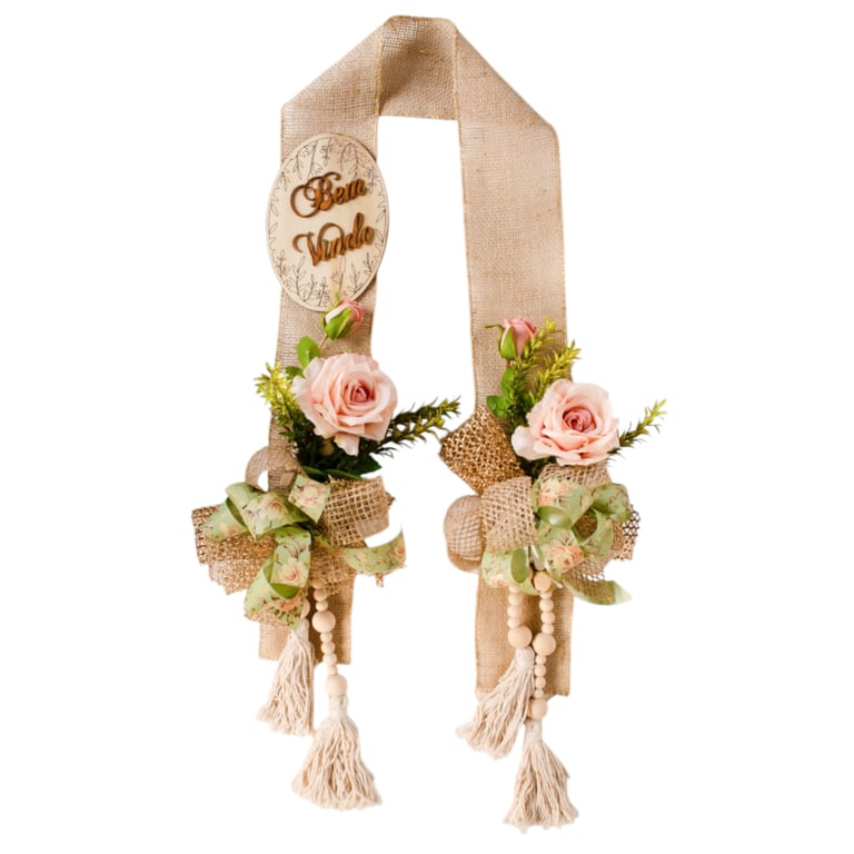 ESCAPULÁRIO / GUIRLANDA 1,60 M BEM VINDO ROSA COM COLAR E LAÇO VERDE