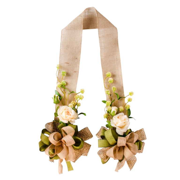 ESCAPULÁRIO / GUIRLANDA 1,60 M ROSA BRANCA COM LAÇO VERDE