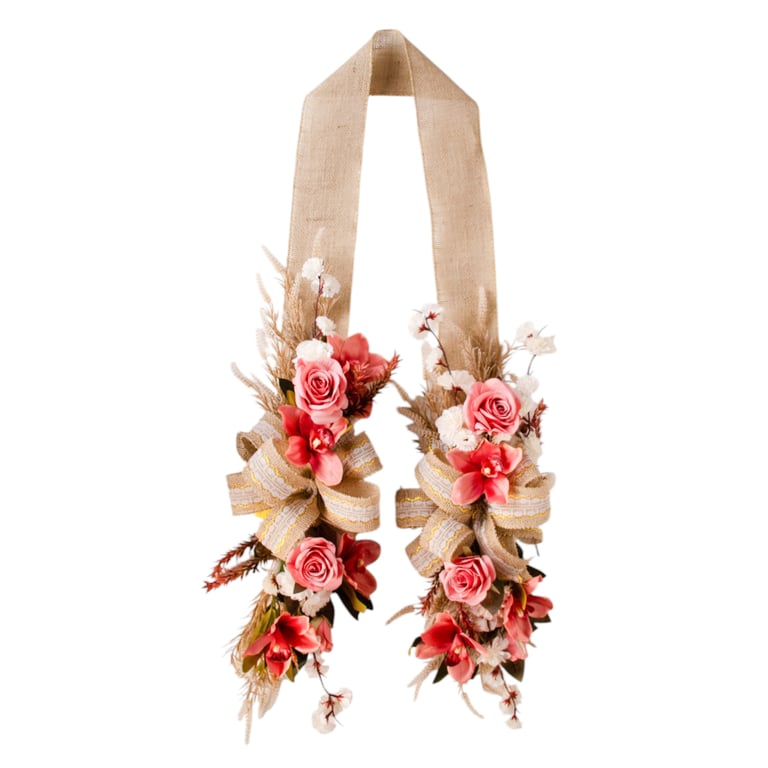 ESCAPULÁRIO / GUIRLANDA 2,10 M ORQUÍDEA COM ROSA LAÇO JUTA COM RENDA