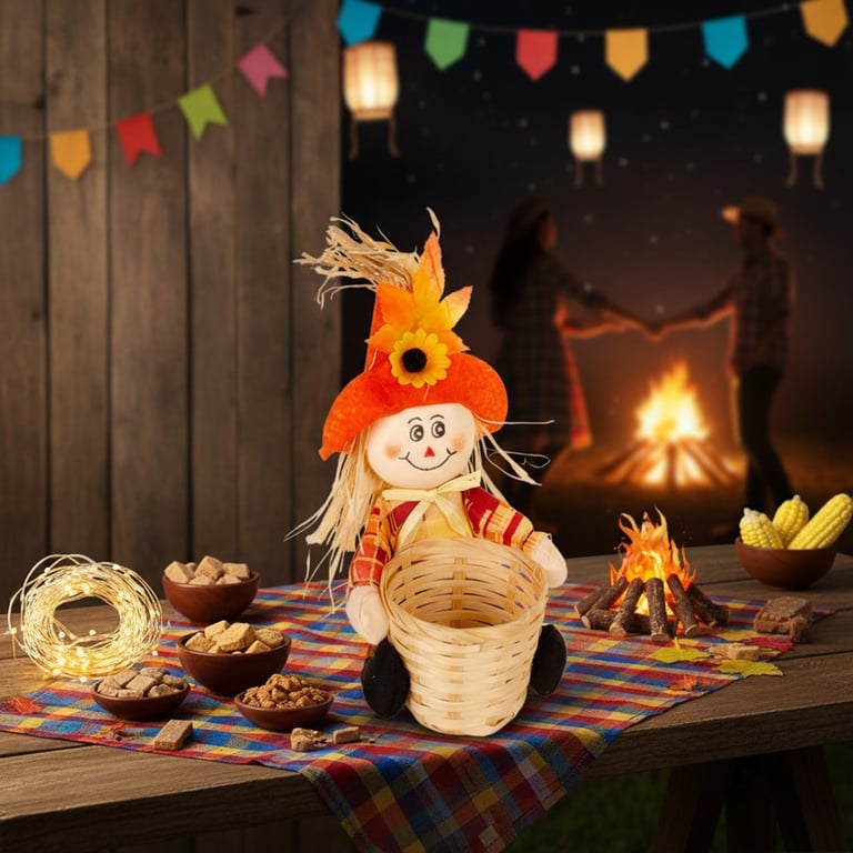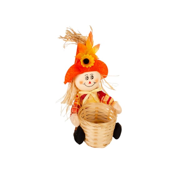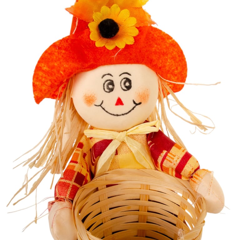 ESPANTALHO 22 CM COLORIDO COM CESTO PALHA