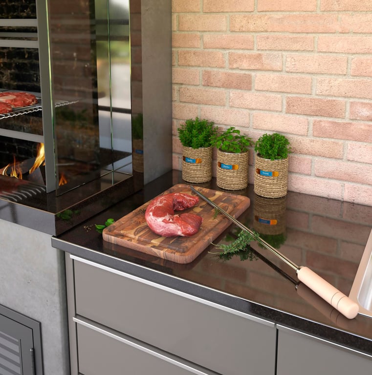 Composição CROMADO COM CABO DE MADEIRA.