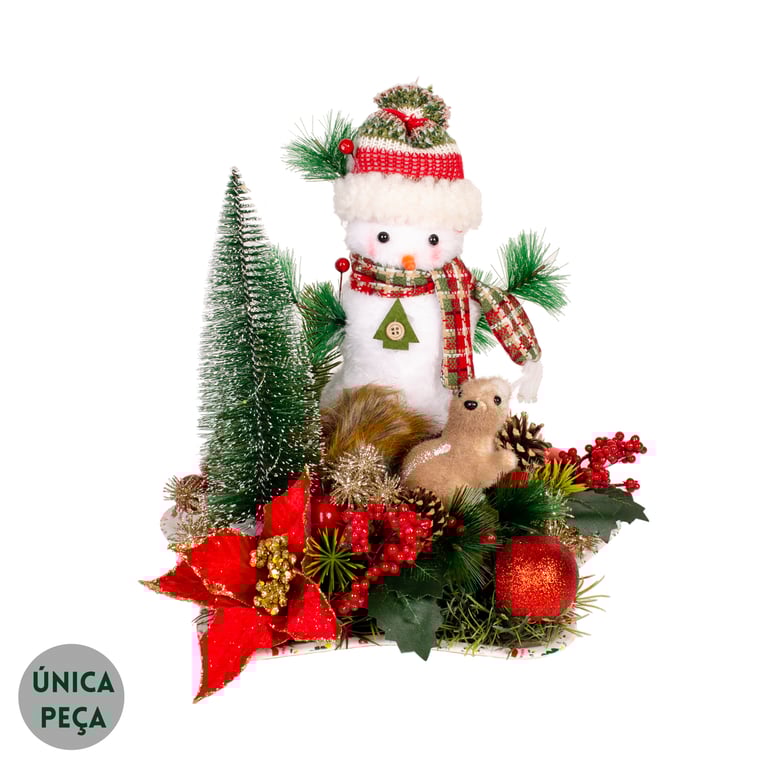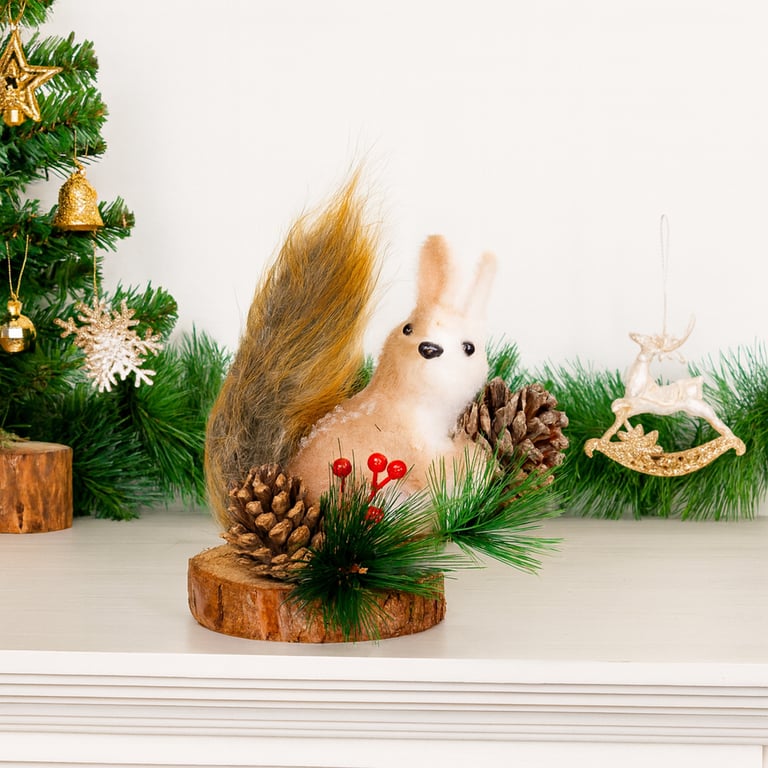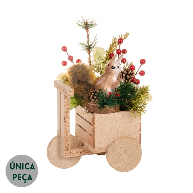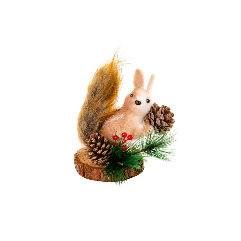ESQUILO 10X17 CM CM SEGURANDO PINHA NO TOCO DE ÁRVORE