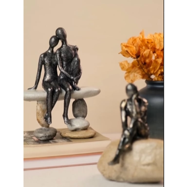 ESTATUETA CASAL SENTADO NA PEDRA 20,5X15,5X7,5 CM RESINA