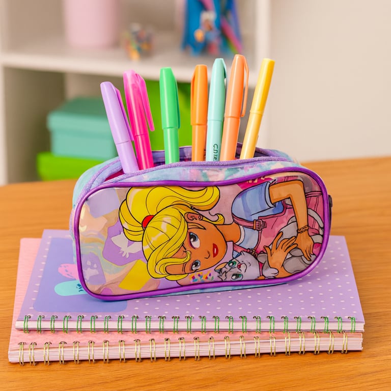 ESTOJO INFANTIL 10X4,5X20 CM 1 ZÍPER MENINA COM GATO