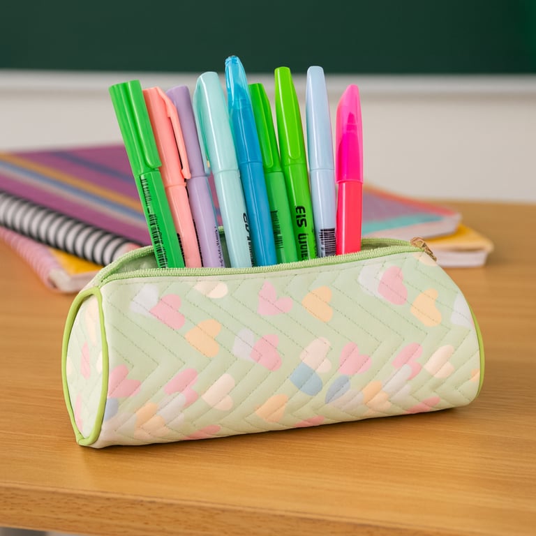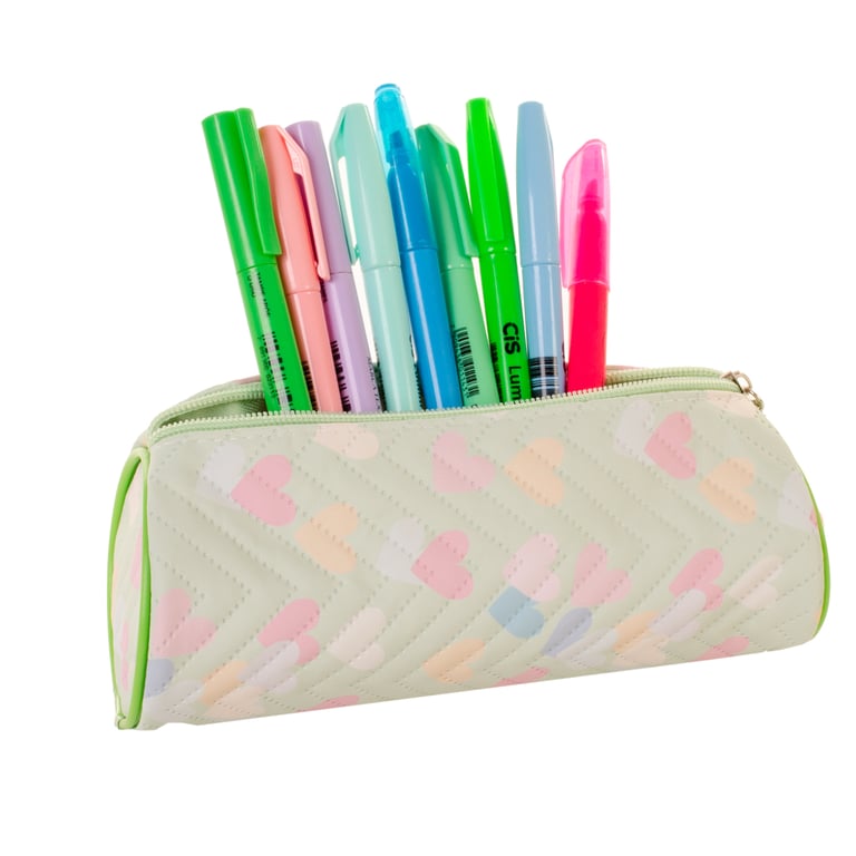 ESTOJO INFANTIL 8X21 CM 1 ZÍPER REDONDO CORAÇÕES