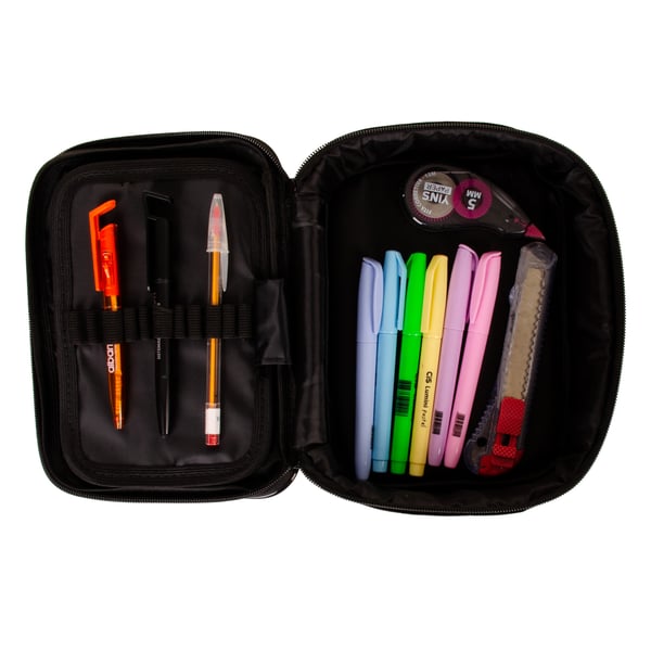 ESTOJO JUVENIL 1 ZÍPER 7X22X18 CM TRICOLOR ORGANIZADOR COM DIVISÓRIA PARA LÁPIS