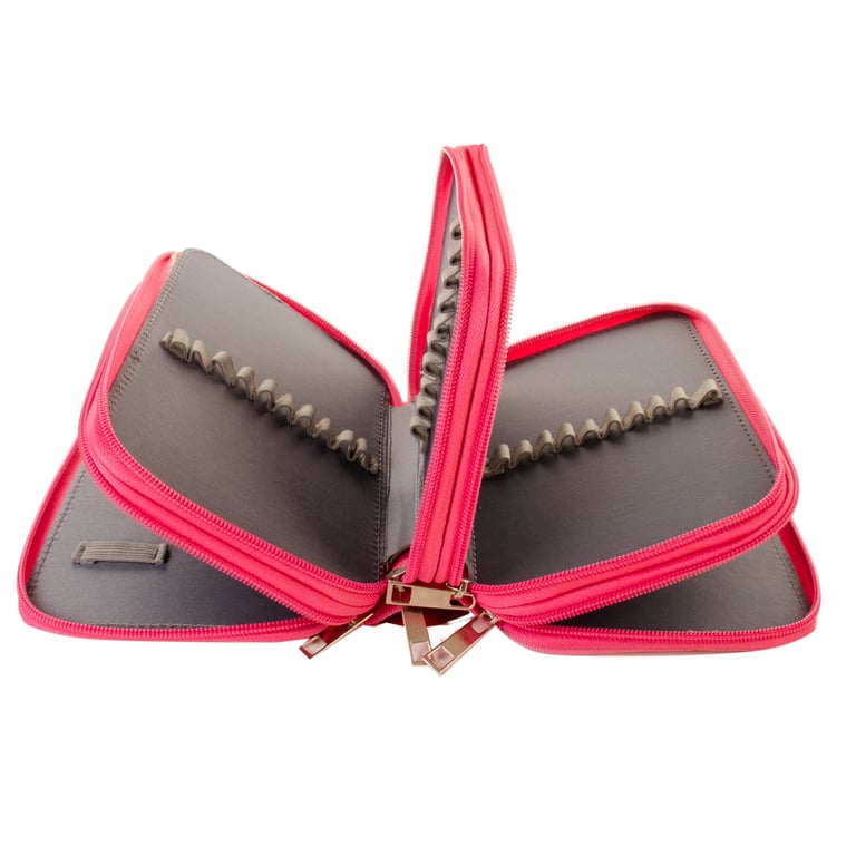 POSSUI 72 COMPARTIMENTOS DE ELÁSTICO PARA ORGANIZAR LÁPIS/CANETA E 3 COMPARTIMENTOS DE ELÁSTICO PARA ITENS MAIORES