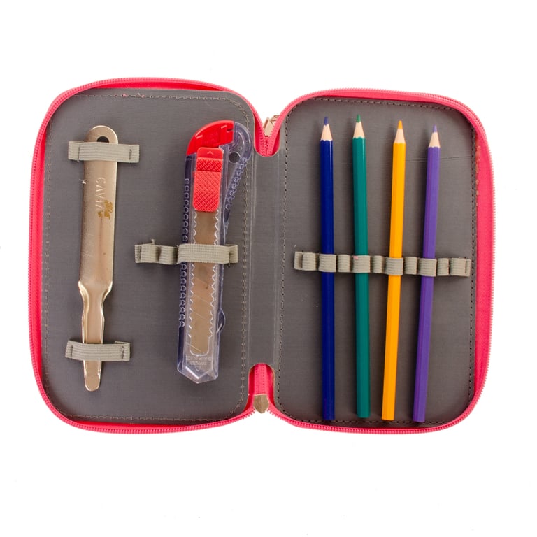 ESTOJO JUVENIL 4 ZÍPER 19,5X7X12 CM ORGANIZADOR COM DIVISÓRIA PARA LÁPIS