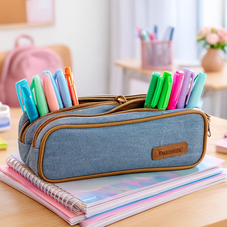 ESTOJO JUVENIL 9,5X20,5X6 CM 2 ZÍPER JEANS