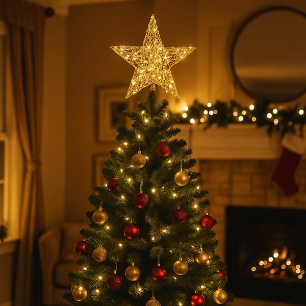 ESTRELA PONTEIRA 20 LEDS BRANCO QUENTE 30X25 CM À PILHA ARAMADA