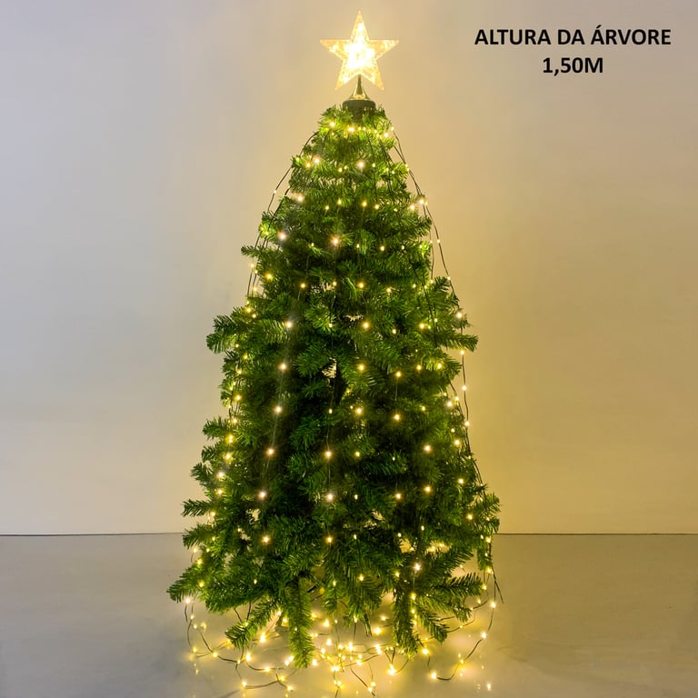 ESTRELA PONTEIRA PENDENTE X18 380 LEDS BRANCO QUENTE 8 F 2,10 M FIO VERDE BIVOLT