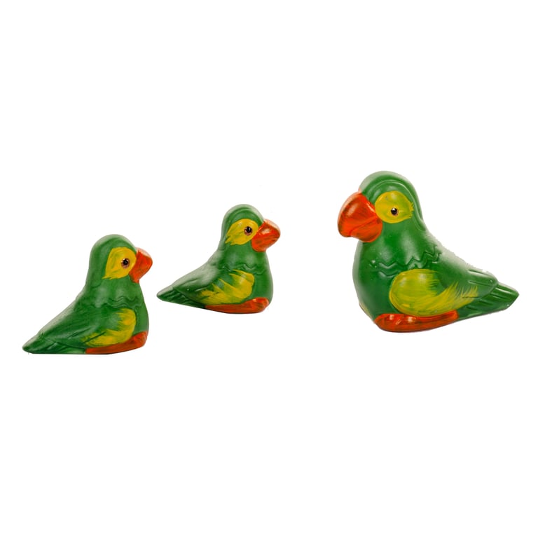FAMÍLIA PÁSSARO PAPAGAIO TRIO CERÂMICA