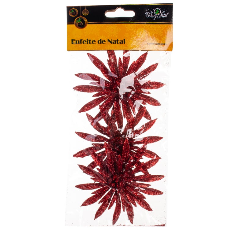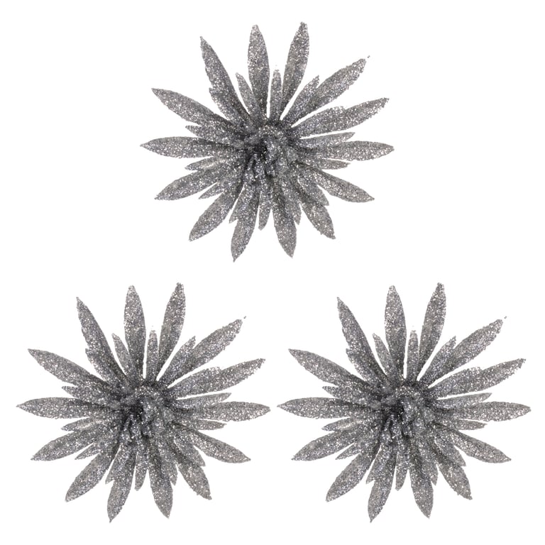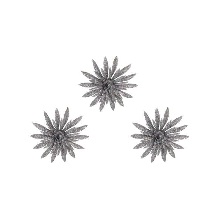 FLOR GLITEADA 9 CM COM PRESILHA 3 PEÇAS