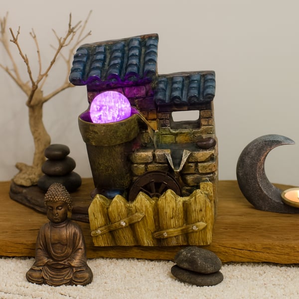 Sugestões de uso ALÉM DE SEREM LINDAS PEÇAS DECORATIVAS AS FONTES DE ÁGUA TRAZEM A SENSAÇÃO DE PAZ, HARMONIA E RELAXAMENTO PARA O AMBIENTE, ATRAVÉS DO SOM DAS QUEDAS DE ÁGUA.