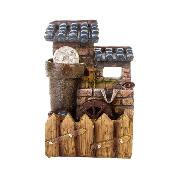 FONTE ÁGUA 25X16X13 CM BIVOLT 2 QUEDAS COM RODA TELHADO AZUL