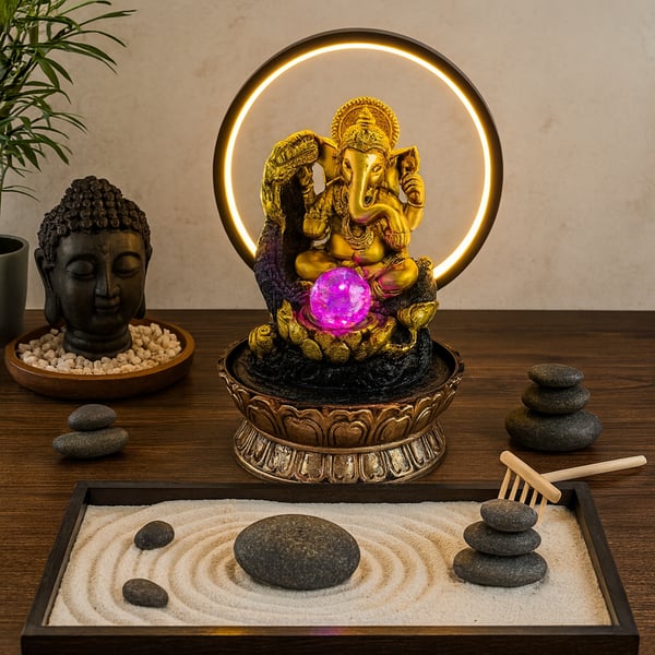 FONTE ÁGUA 35X20 CM BIVOLT 1 QUEDA ELEFANTE GANESHA COM ARCO DE LED