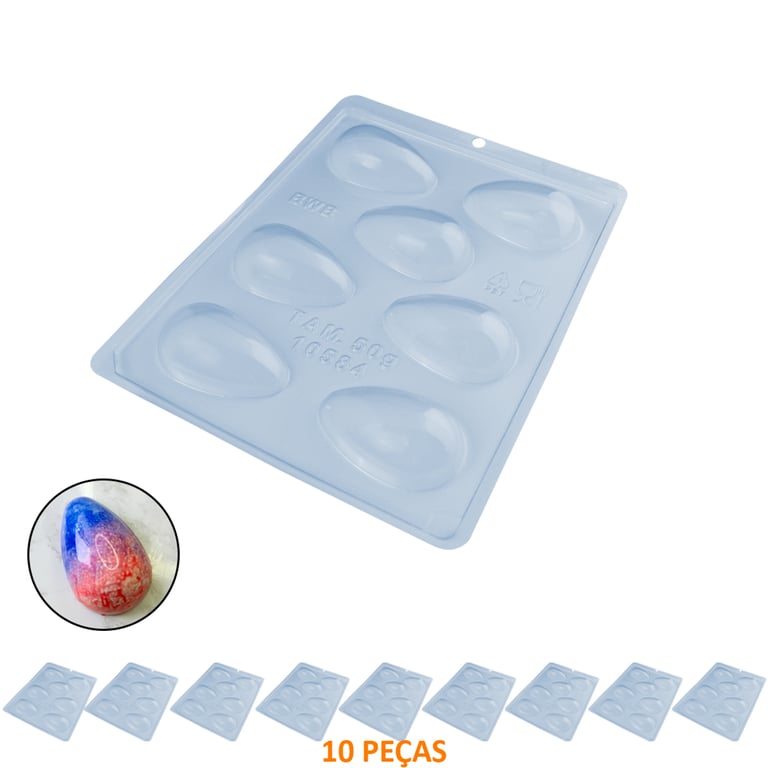 FORMA CHOCOLATE OVO 50 G 24X18,5 CM 10 PEÇAS 7 CAVIDADES