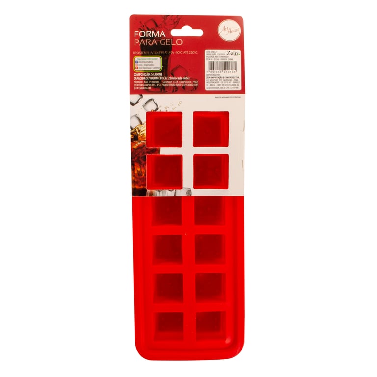 FORMA GELO / CHOCOLATE 3X11X25 CM 12 CUBOS QUADRADOS SILICONE DADO
