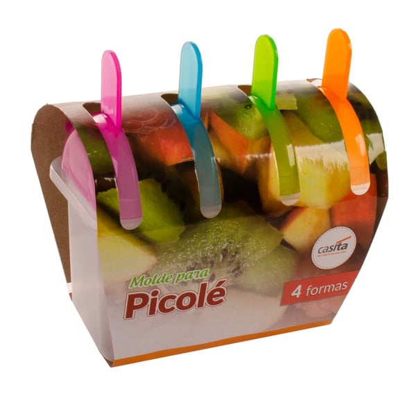 FORMA PICOLÉ PLÁSTICA 4 CAVIDADES 15X15X8 CM COM CANUDO