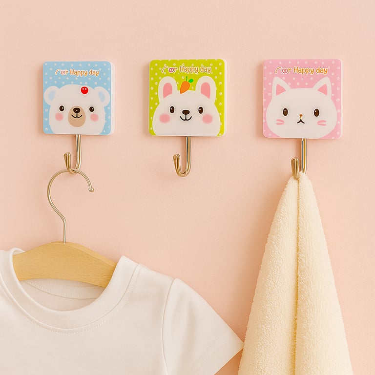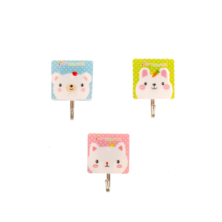 GANCHO PAREDE PLÁSTICO 3 PEÇAS 7X5 CM URSO ADESIVO