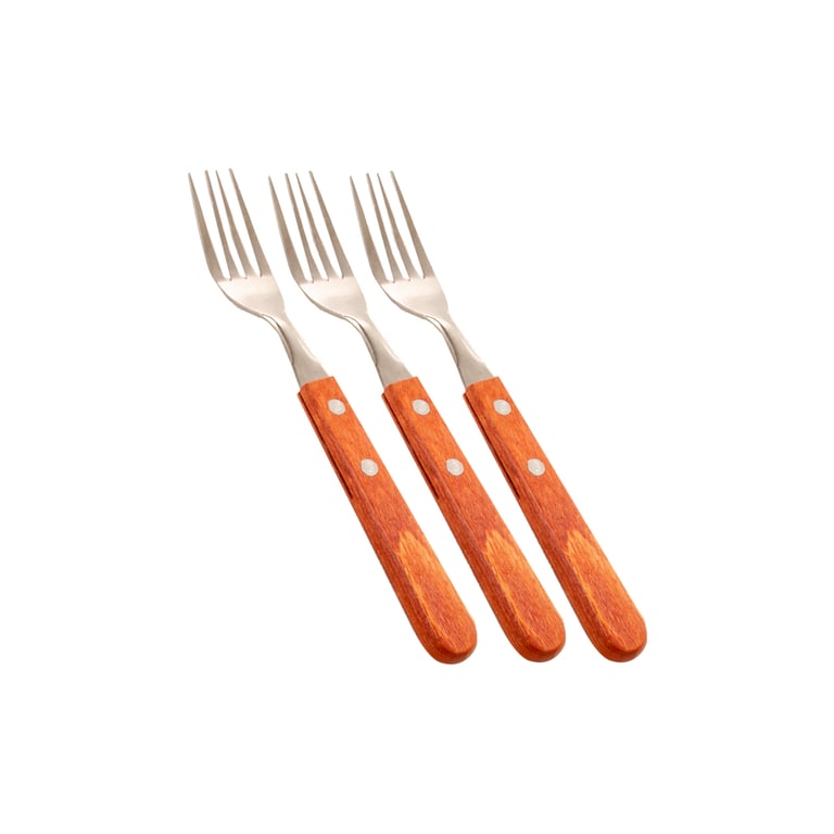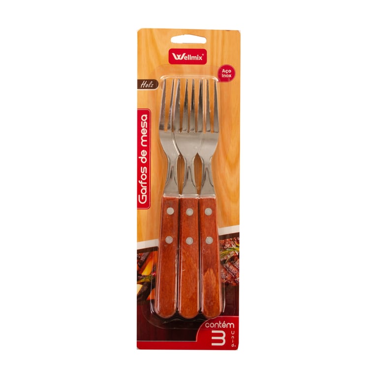 GARFO DE MESA INOX 3 PEÇAS 20X3 CM CABO MADEIRA
