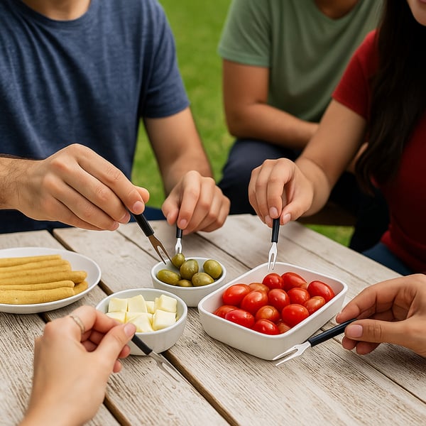 GARFO PARA PETISCOS 10 CM 6 PEÇAS INOX CABO PLÁSTICO