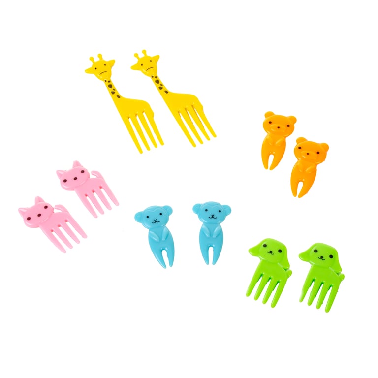 GARFO PLÁSTICO PARA PETISCOS 4 CM 10 PEÇAS ANIMAIS