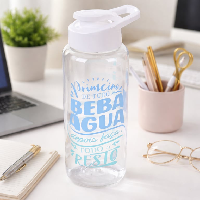 GARRAFA SQUEEZE 1 L FRASES COM BICO PLÁSTICA