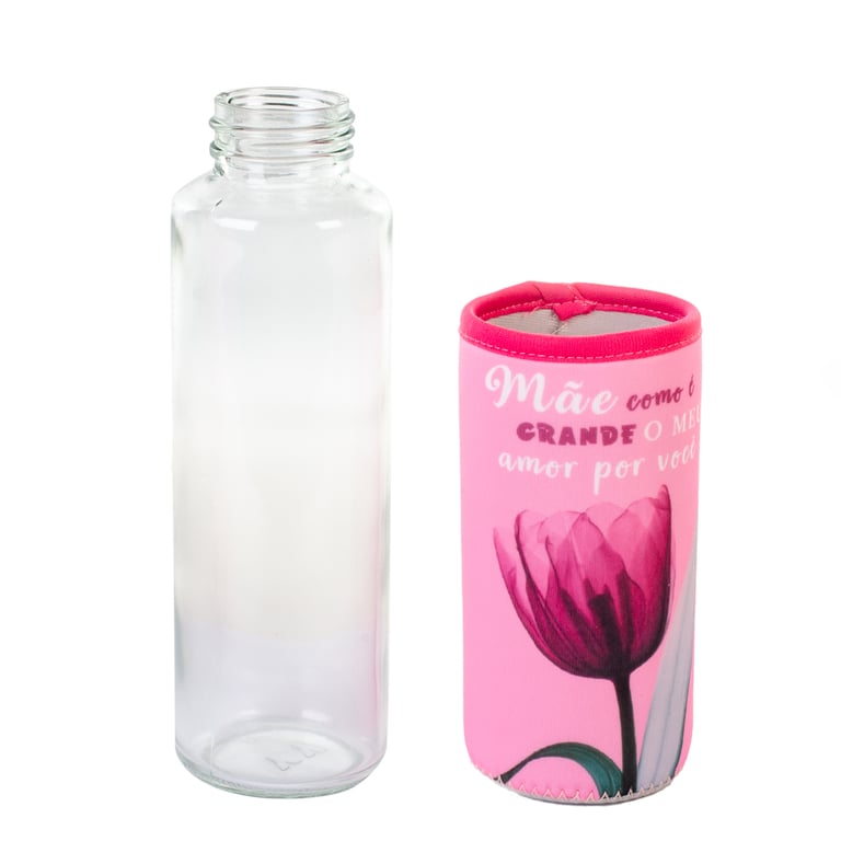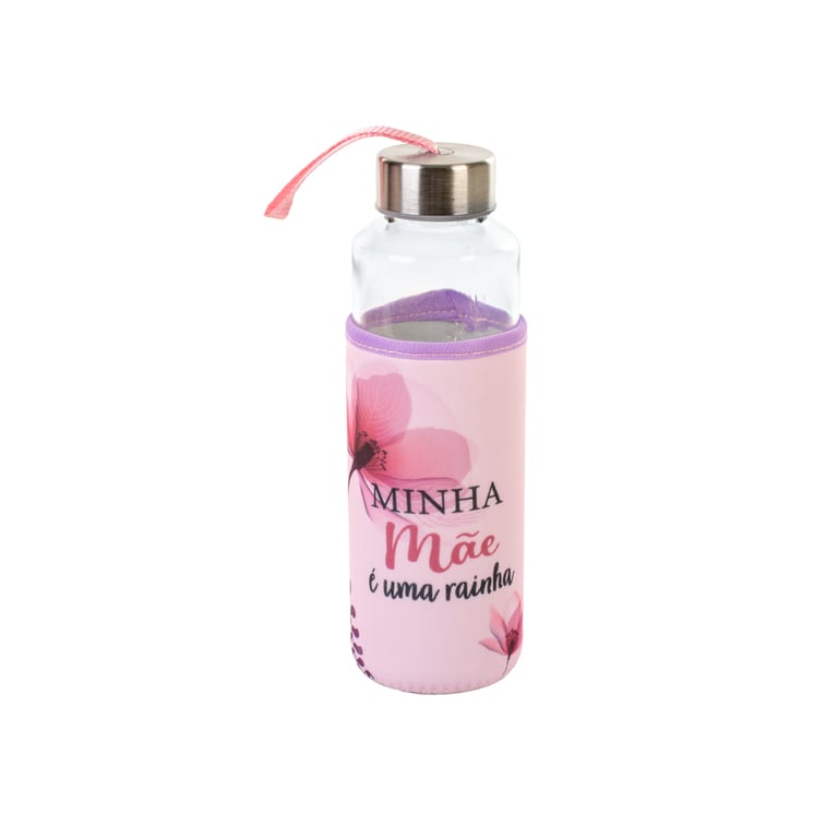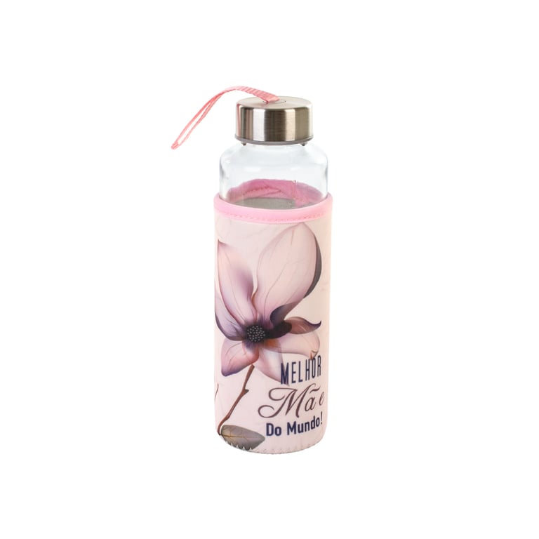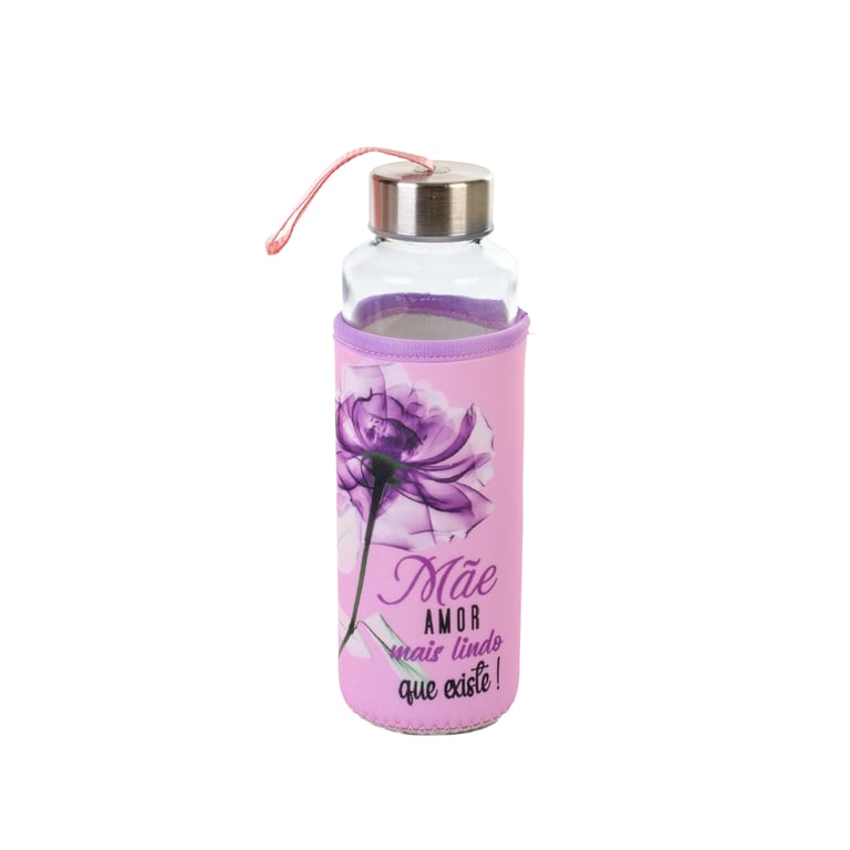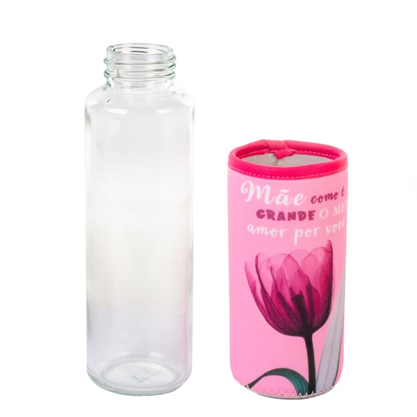 GARRAFA SQUEEZE 400 ML VIDRO MÃE CAPA NEOPRENE