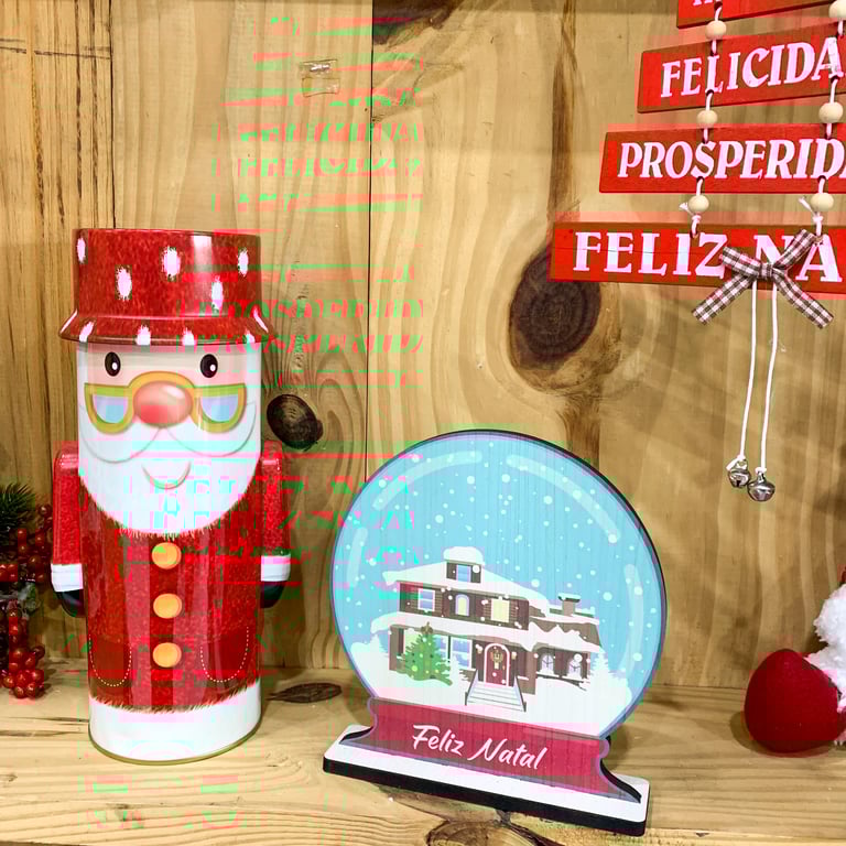 GLOBO FELIZ NATAL MADEIRA 16,5X15X3,5 CM