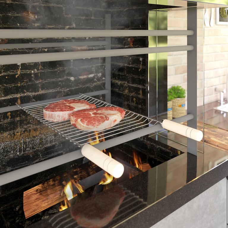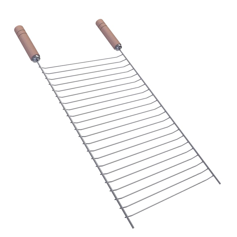 GRELHA NIQUELADA 50X30 CM CABO DE MADEIRA
