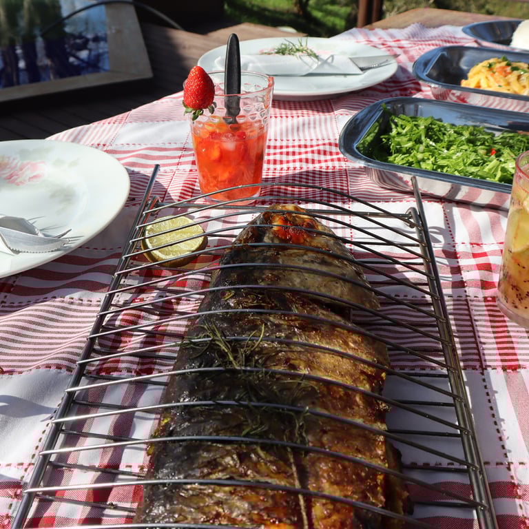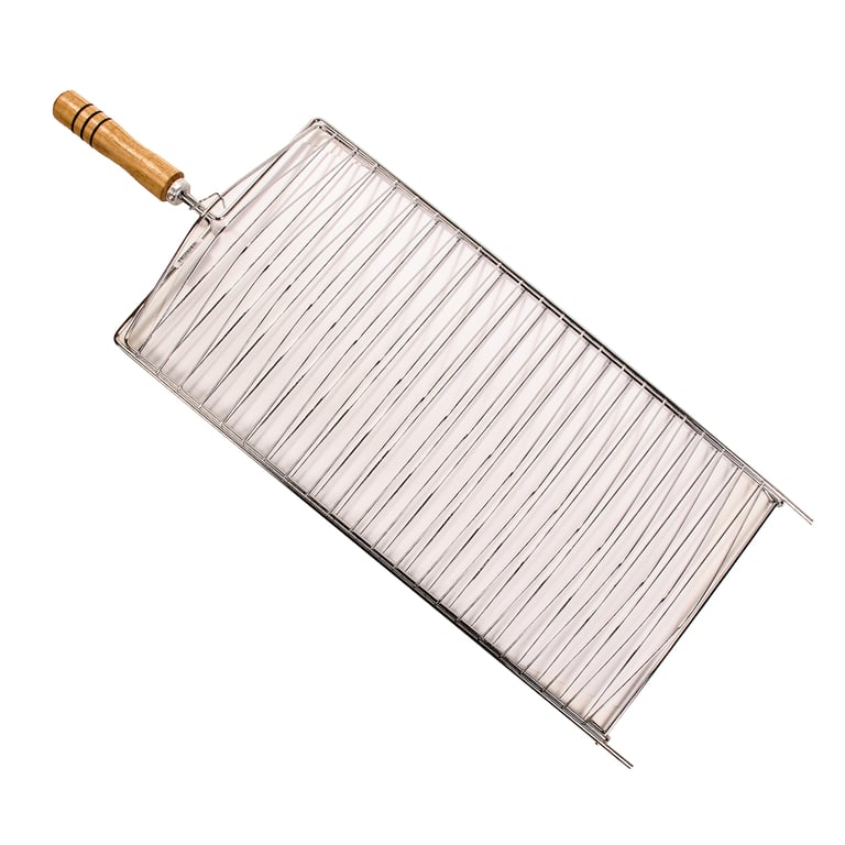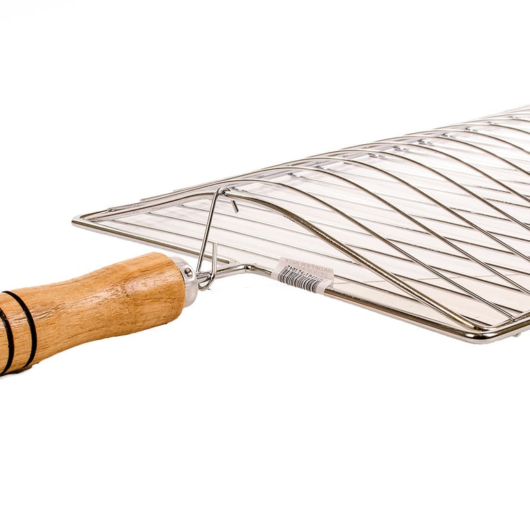 GRELHA PARA PEIXE 78X30 CM CABO MADEIRA
