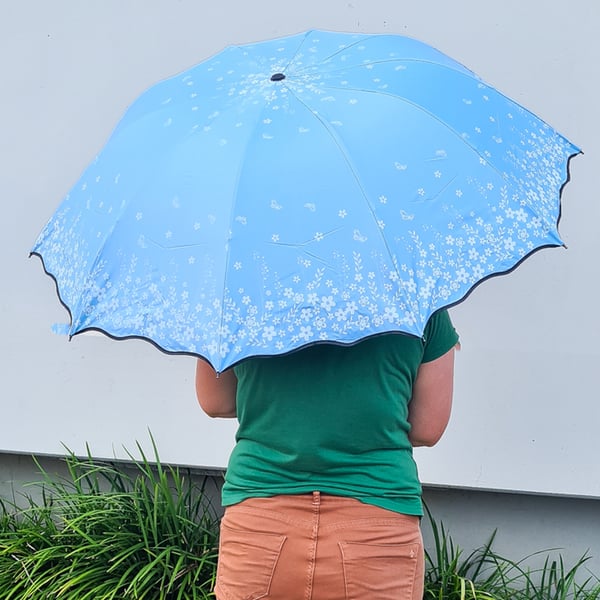 GUARDA CHUVA / SOMBRINHA 10 VARETAS MANUAL FLORAL CONTRA VENTO SOLAR COM BORDA
